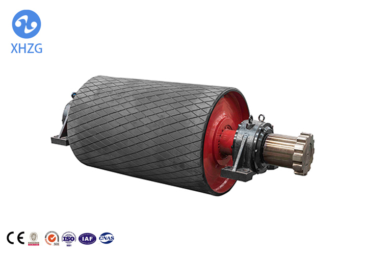 包膠滾筒是皮帶輸送運(yùn)輸系統(tǒng)中重要部件和組成部分。滾筒的包膠能有效改善輸送系統(tǒng)的運(yùn)行狀況,保護(hù)金屬滾筒不被磨損,防止輸送帶的打滑,使?jié)L筒與皮帶同步運(yùn)轉(zhuǎn),從而保證皮帶高效的、大運(yùn)量的運(yùn)轉(zhuǎn)。滾筒的包膠還能有效地防止?jié)L筒與皮帶之間的滑動(dòng)摩擦,減少滾筒表面的物料粘結(jié),從而減小皮帶的跑偏和磨損。廣泛用于:鋼鐵、冶金、煤炭、水泥、發(fā)電、化肥、糧庫(kù)、港口等行業(yè)。